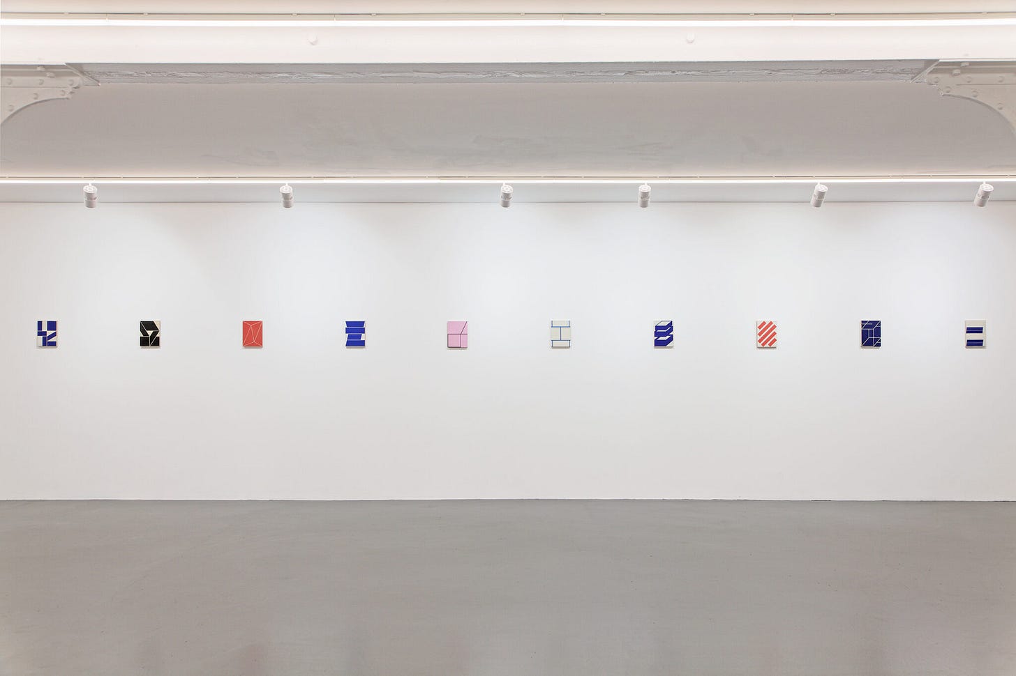 The premise sounds almost brutal: very small formats (around 23 × 18 cm), strict geometry, and a tightly reduced palette. These are exactly the kinds of constraints that usually flatten a body of work into polite variations. Here, the opposite happens. Each piece feels sharper, smarter, and more inventive than the last. Every painting is its own little discovery, like a visual firework—compact, precise, but bursting with ideas. Just when you think you’ve seen everything that can be done within this framework, the next work opens up a new possibility.